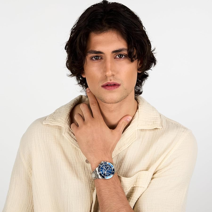 Rolex Inspired Silver Chain Watch – Blue Dial with Quartz Marking