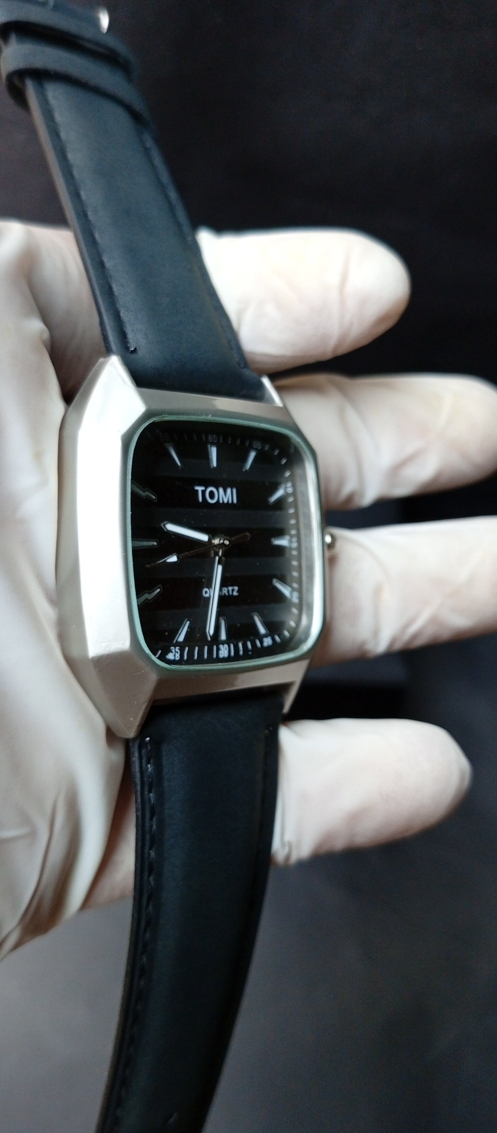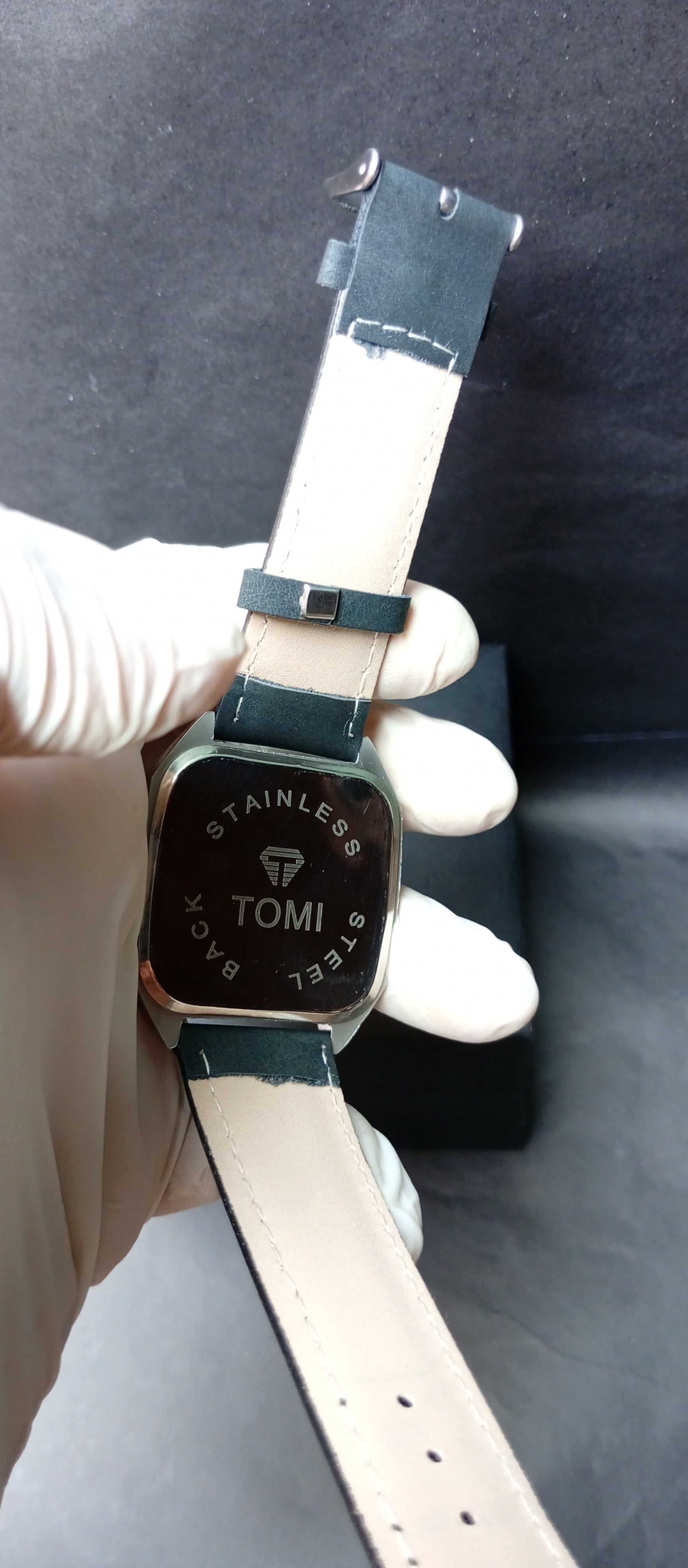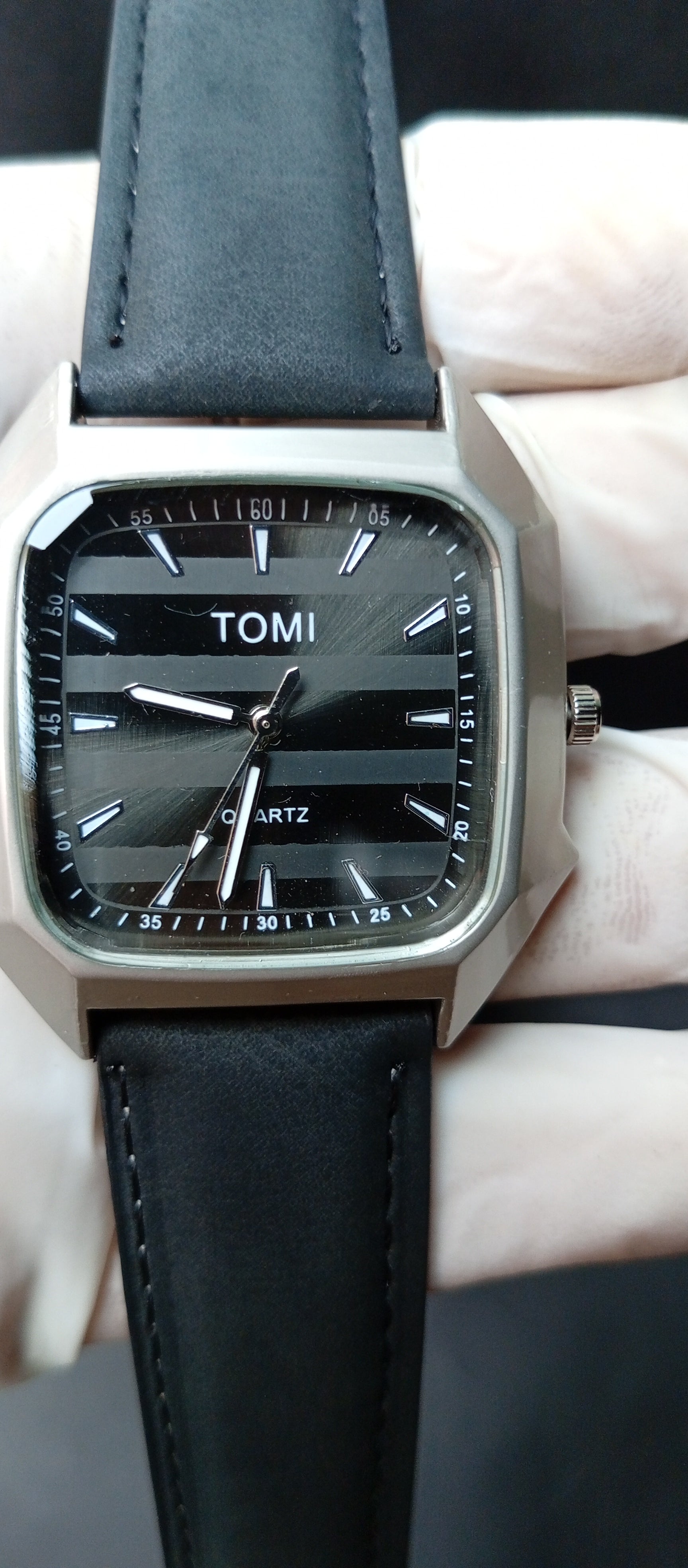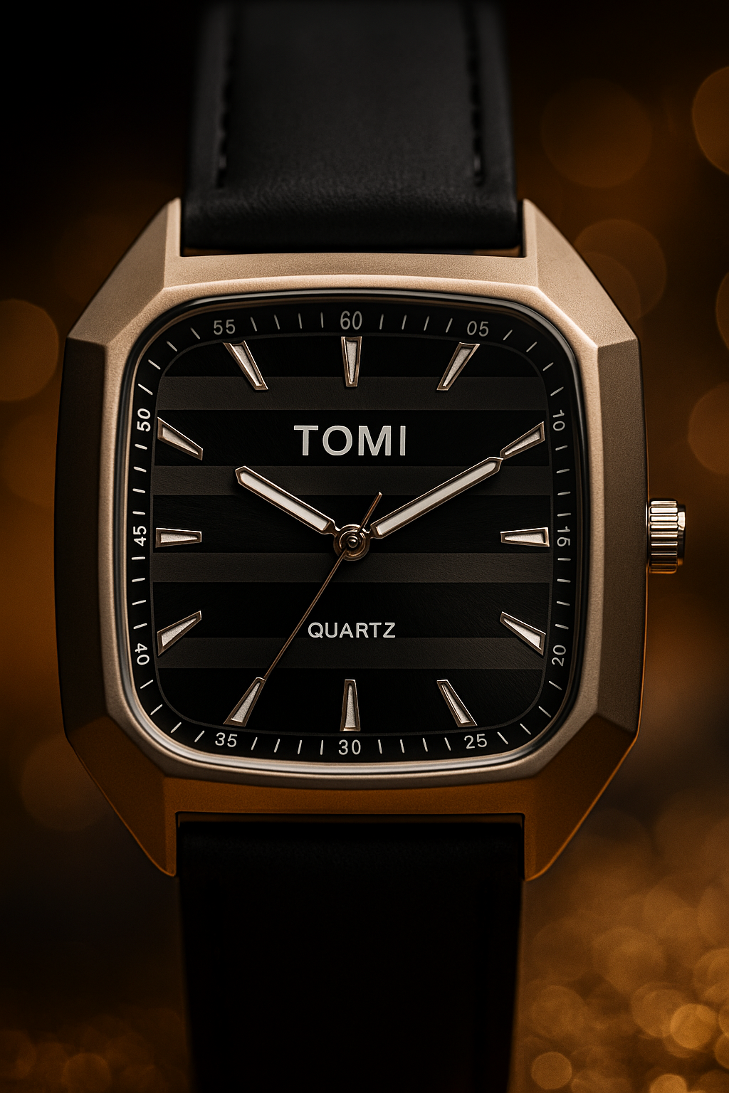 Upgrade your style with this Tomi-inspired luxury watch. Featuring a premium black leather strap and a square dial with gray outer color and shining black inner dial, this watch combines modern elegance with bold sophistication. The glossy dial glass adds a sleek and premium look.